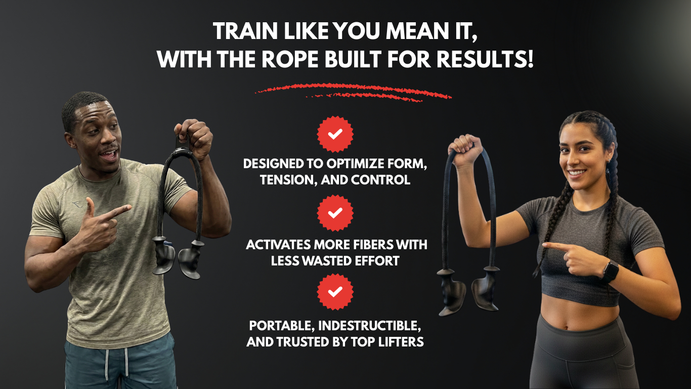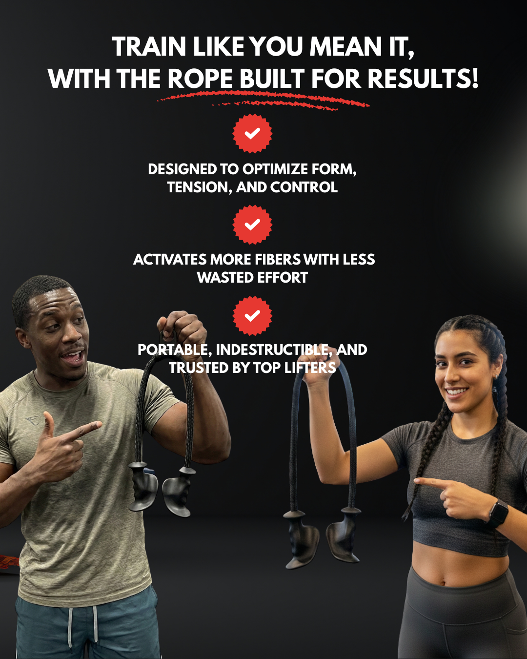 ✅ Extended Ergonomic Rope – Superior mind-muscle connection